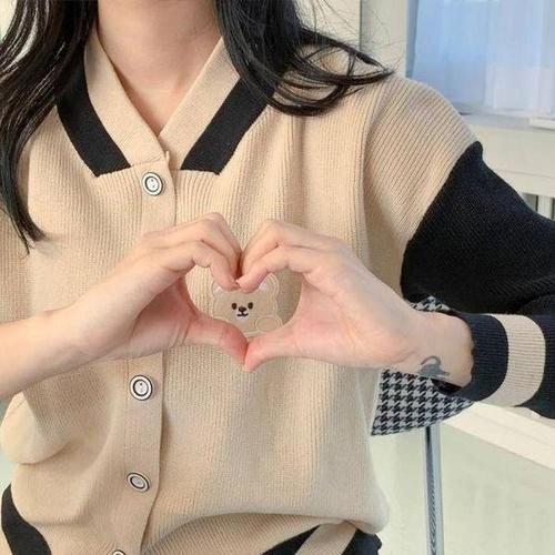 [셀러허브_여성트랜드패션]ONM 온나핏 아리든 브이넥 배색 곰돌이 뱃지 단추