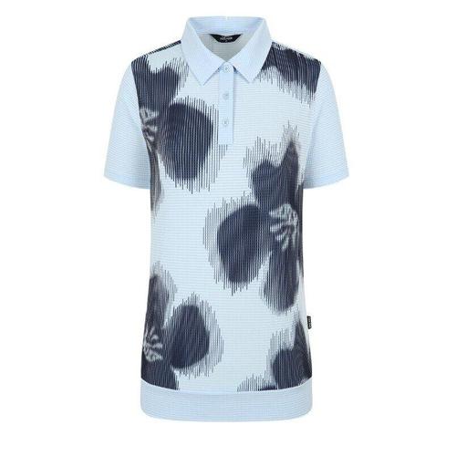 [팬텀]여름 여성 빅플라워 패턴 시어서커 카라 반팔티셔츠 / 221E2TO104_BL_IC