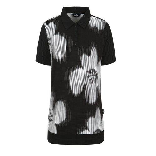 [팬텀]여름 여성 빅플라워 패턴 시어서커 카라 반팔티셔츠 / 221E2TO104_BK_IC