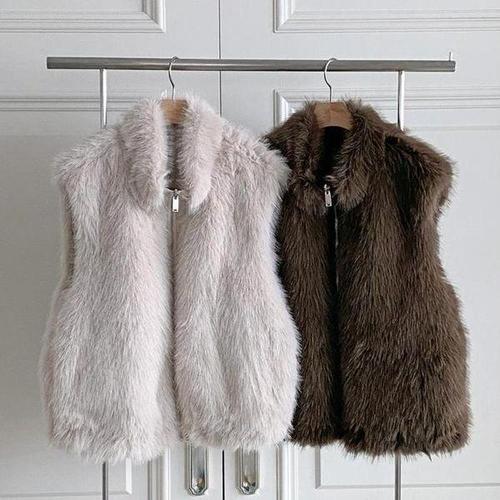 여성용 퍼 베스트 겨울 페이크털 나시 아우터 슬림 조끼 Women's Vest