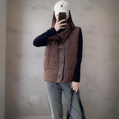 [옷자락] 여성 힙무드 퍼카라 퀼팅 패턴 패딩조끼