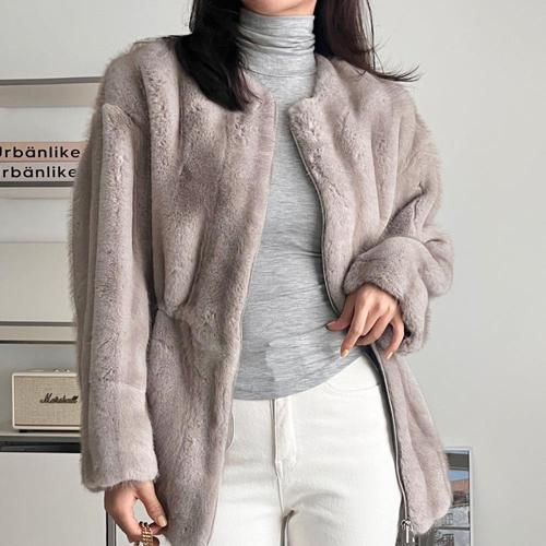 [다잇템]여자 홀리데이 인조밍크 퍼 웨이브 집업 코트