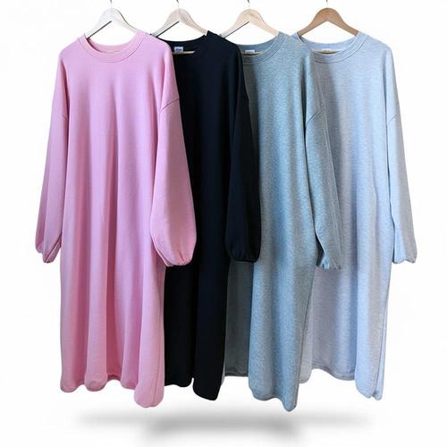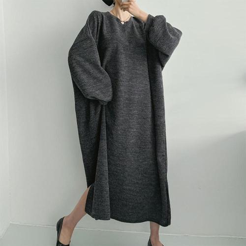 |KSO5976|여성 봄철 임신부 원피스 슬릿 퍼프 소매 박시핏 골지 롱드레스
