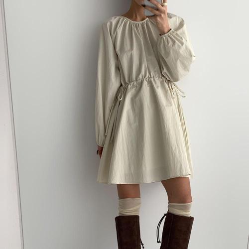 |CSO5969|여성 핀턱 셔링 오버사이즈 퍼프 소녀 미니 드레스 봄 데이트룩