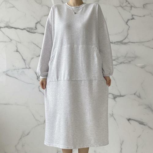 |KSO5A06|여성용 캥거루 포켓 퍼프 임신 롱드레스 무채색 봄 시즌