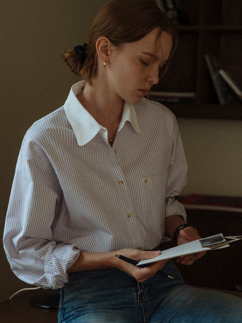 레귤러 스탠더블 스트라이프 퍼플셔츠_S1116