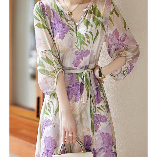 [퀸이즈][퀸이즈] [88까지]제시르 퍼플플라워 자수 랩 브이넥 원피스