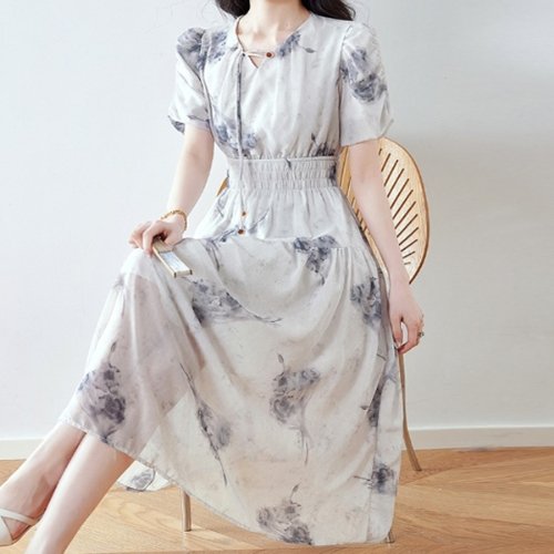 제로투올샵2 / 여름 여성 단추 반팔 원피스 슬림핏 핑크퍼플 XL