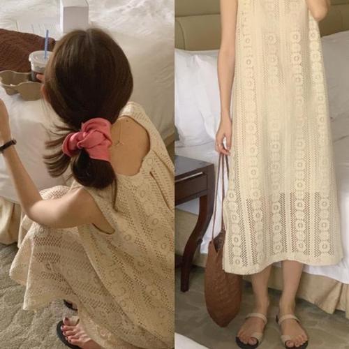 [에이치플러스몰]펀칭레이스 인기 니트 롱원피스 여자 감성 나시 여성
