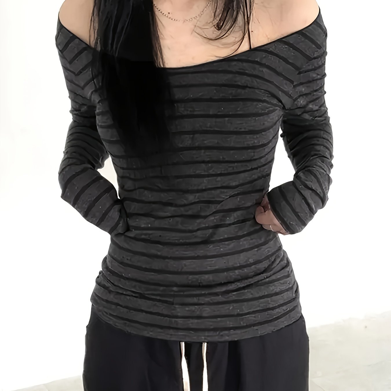TEMU 빈티지 그레이 오프숄더 루즈핏 슬림 가벼운 긴팔 탄성 커버 셔츠 탑, 초가을용