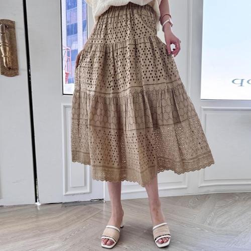 여성 프릴 롱 펀칭 레이스 스커트