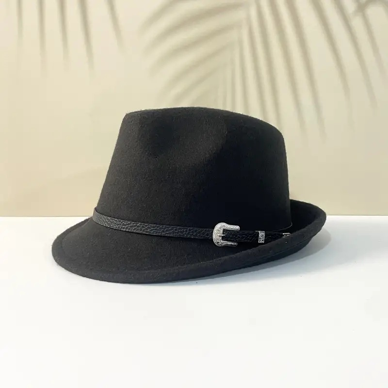 TEMU 밴드가 있는 클래식 블랙 펠트 페도라 모자, 가벼우며 늘지 않는 폴리에스터, 건조 청소 전용 - 우아한 가을 및 겨울 액세서리, 모자 액세서리