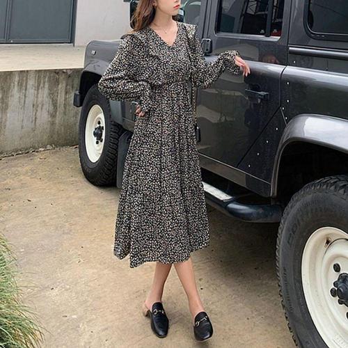 여자 꽃무늬원피스 쉬폰 롱원피스 여름 긴팔 플라워 프릴 WFNQNC9