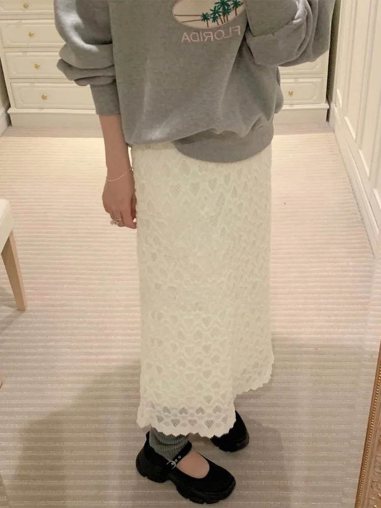 한국식 스위트 하트 레이스 엘라스틱 웨이스트 미니 스커트 여성용 가을 다용도 슬림 A라인 스커트 짧은 소녀용 하이 웨이스트 스커트