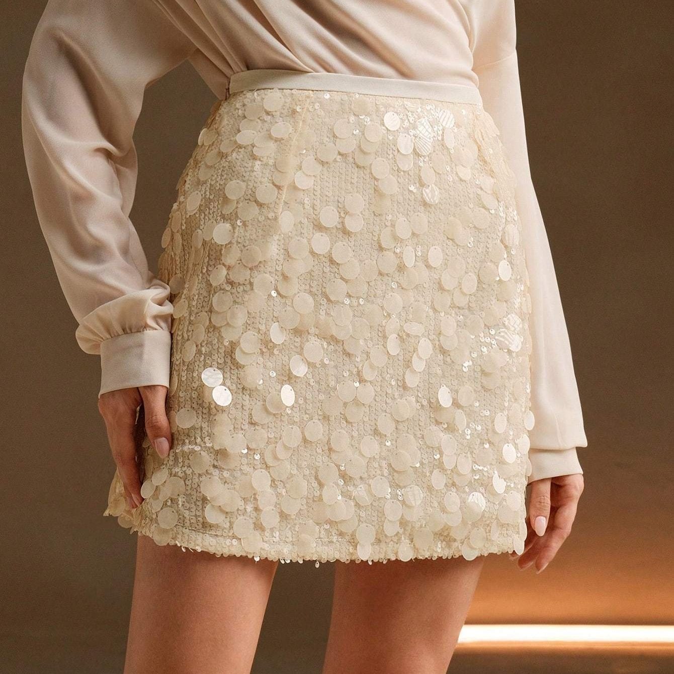 TEMU 여성용 우아한 어반 스타일 스팽글 시어 미니 스커트 | 파티 및 모임에 완벽, 시크하고 트렌디한 여성 패션, 단색, 올 시즌 착용