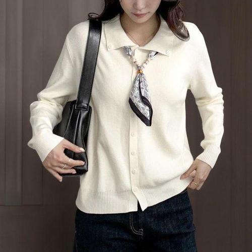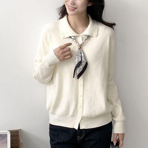 [신상오픈런]여성 페이즐리 패턴 버튼 카라 니트 가디건 가을용