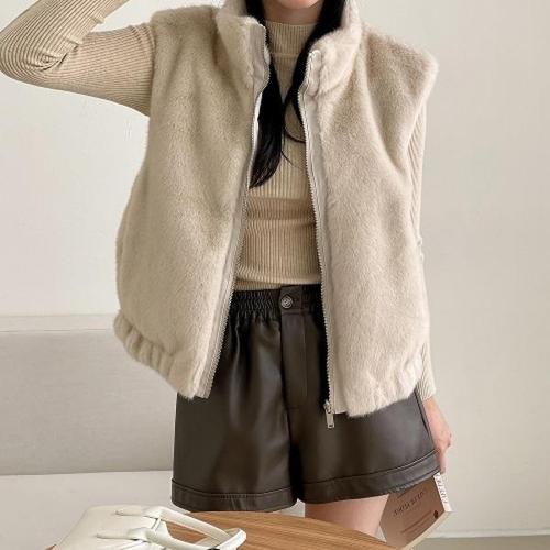 [신상오픈런]여자 겨울 부드러운 페이크퍼 밴딩 하이넥 집업 조끼
