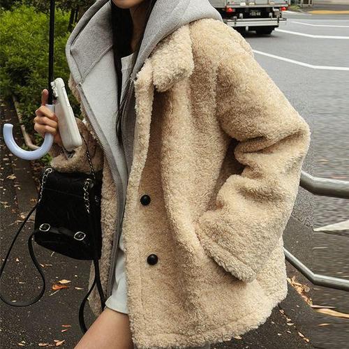 [밀스튜디오]후드넥페이크퍼 인조 무스탕재킷