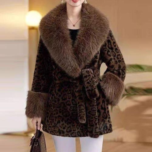 [셀러허브_여성트랜드패션]인조 밍크 호피 블랙 퍼 코트 털 여성 겨울 여자 페이크