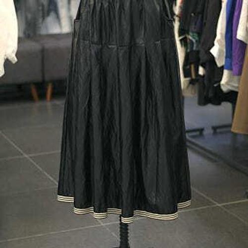 [르니앤맥코이]배색 밴딩 페이크 가죽 롱 스커트 ARAMM11SK002HJY-1