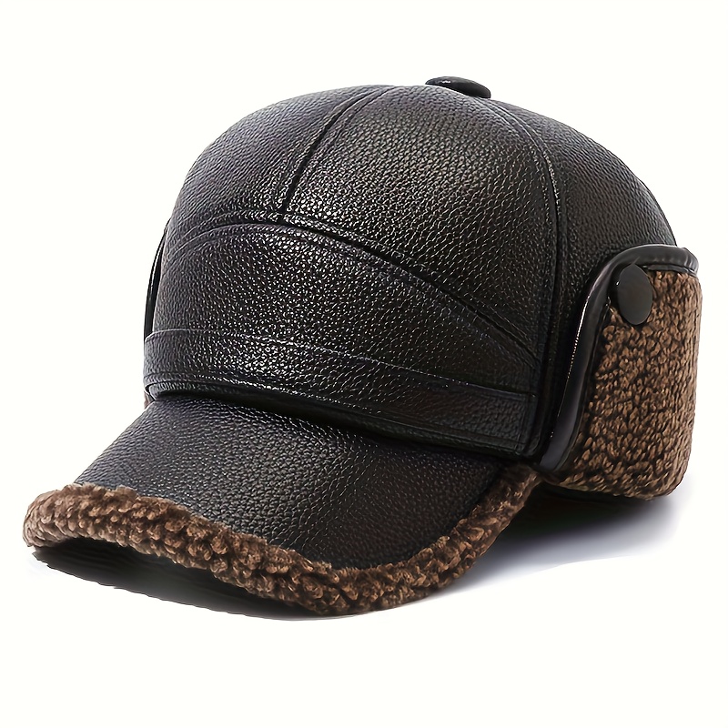 TEMU 3가지 색상 제공, 블랙, 커피, 그레이 남성용 겨울 귀마개 캐쳐 모자 - 따뜻하고 방풍, 추운 날씨용 안감, 블랙 인조 가죽 파일럿 스타일, 보온 귀 보호, 폴리에스터 소재, 패션 디자인, 겨울 착용, 아웃도어 헤드웨어, 패셔너블한 추운 날씨 모자, 남성 패션, 아웃도어 애호가