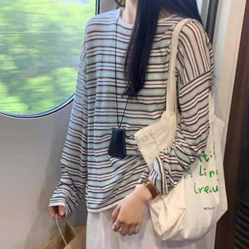여행 나들이 룩 편한 스트라이프 루즈 핏 긴팔 티셔츠 WFL0IGI