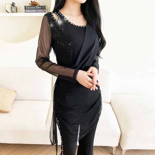 [깨비몰][깨비몰]여성 시스루 라틴라인댄스 반팔티셔츠 댄스복 (