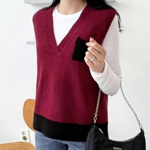 KDNC 루즈핏 니트조끼 여성용 브이넥 니트베스트