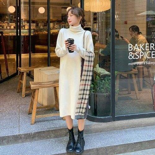 시연 롱 니트 원피스 스웨터 목폴라 터틀넥 루즈핏
