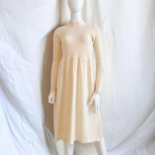 여자 슬림 목폴라 원피스 A라인 플리츠 긴팔 롱스커트