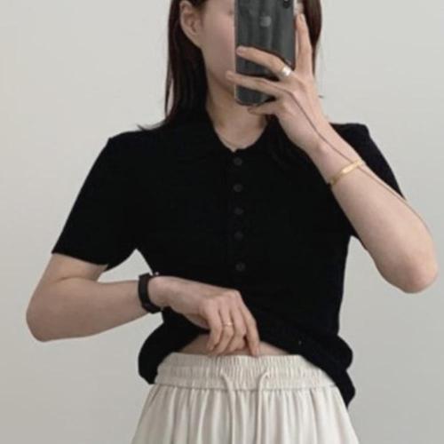 |CCTA2E2|여성 캐주얼 반팔 니트 폴로 티셔츠 데일리룩