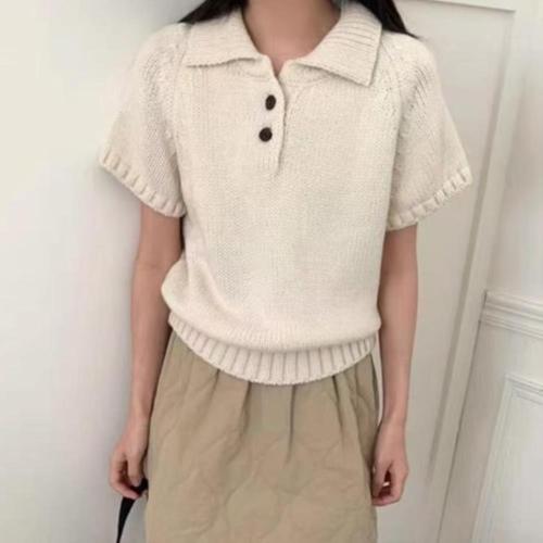 |CCTA2E2|여성용 캐주얼 반팔 니트 폴로 티셔츠