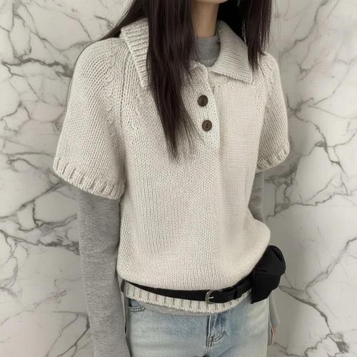 [셀러허브_여성트랜드패션]여성 클래식 꽈배기 폴로 반소매 니트티