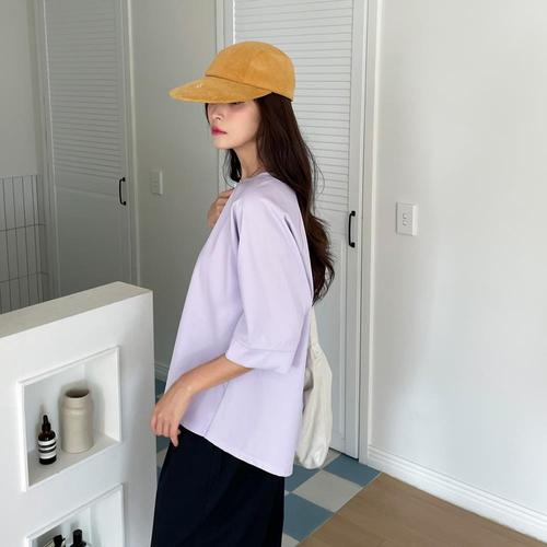 폴리에스터 여름 반팔티 브이넥 슬림 여성티셔츠