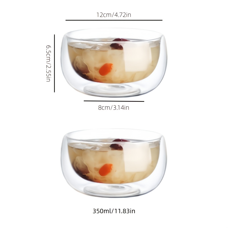 TEMU 2개입 이중 단열 디저트 볼, 과일 및 야채 샐러드 볼, 유리 수프 및 국수 볼, 신선도 유지 야채 및 디저트 용기, 과일 샐러드, 요거트, , 디저트, 밥용 | 수공예, 원형, 가정 및 식당용