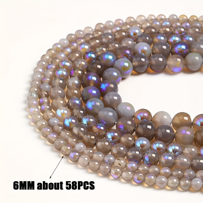 TEMU 천연석 비즈, 그레이 문라이트 장식용 비즈, 매끄러운 라운드 비즈 다양한 사이즈, 6/8/10mm, 약 36-58개, DIY 주얼리 만들기, 목걸이, 팔찌 및 액세서리 공예용