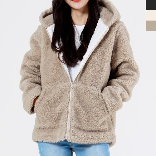 TEMU 단색 집업 테디 후디, 캐주얼 긴팔 후디 재킷, 여성 의류