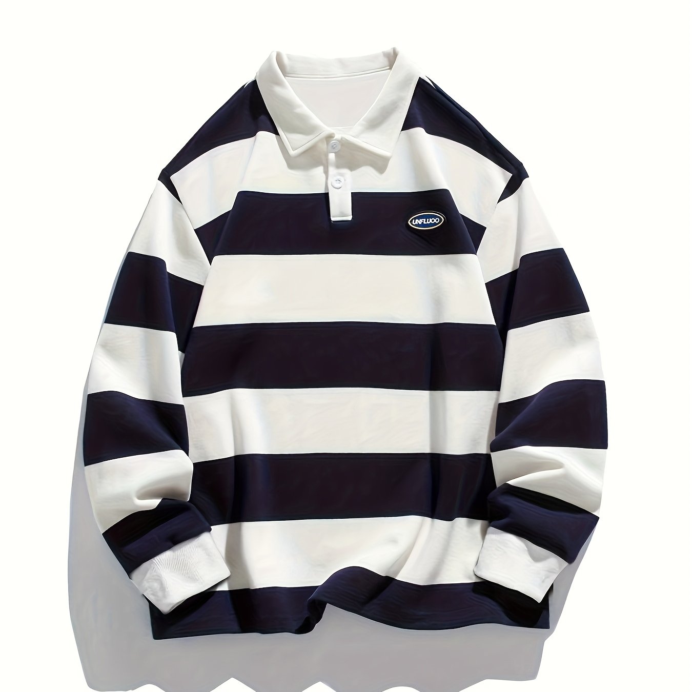TEMU 남녀공용 오버사이즈 옥스포드셔츠 - 클래식한 화이트 & 네이비블루 줄무늬, 캐주얼&세미폼럴 긴팔, 대조적인 칼라와 커프 장식, 릴랙스핏으로 해변/직장/운동에 완벽! 기계 세탁 가능한 Unisex 상의 (성인+청소년), 사무복, 바닷가 룩, 편안한 원단, 내구성 있는 소재, 젊은 감각의 캠퍼스 스타일|스포츠|남자셔츠|남자옷