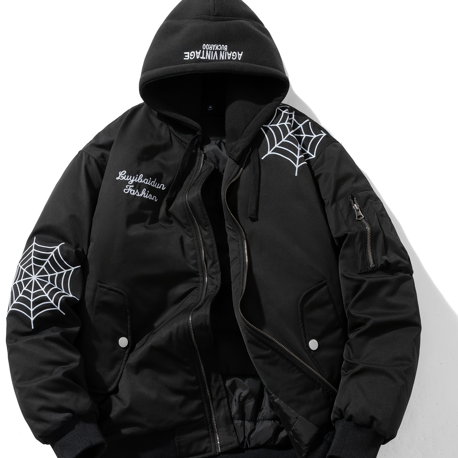 TEMU 남성용 자수 후드 재킷 | 가을-겨울 따뜻한, 신축성 없는 원단, 캐주얼 스타일, 탈착식 후드