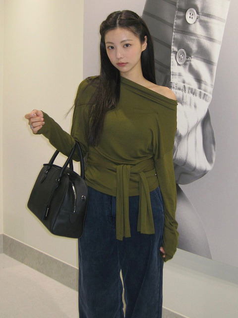 TEMU 여성 봄/가을 신상 패션 캐주얼 단색 비대칭 라운드넥 루즈핏 티셔츠 | 집 또는 데일리 외출에 이상적, 긴소매