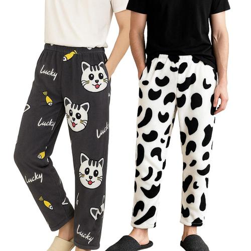 TEMU 크리스마스 캐릭터 레드 여성용 두꺼운 플리스 안감 따뜻한 캐주얼 홈 플란넬 파자마 긴 바지, 가을 겨울용 실내 편안한 착용, 포근한 파자마, 휴일 파자마, 축제 디자인, 플러시 소재, 편안한 핏, 수면복 하의, 휴일 선물, 여성 수면복