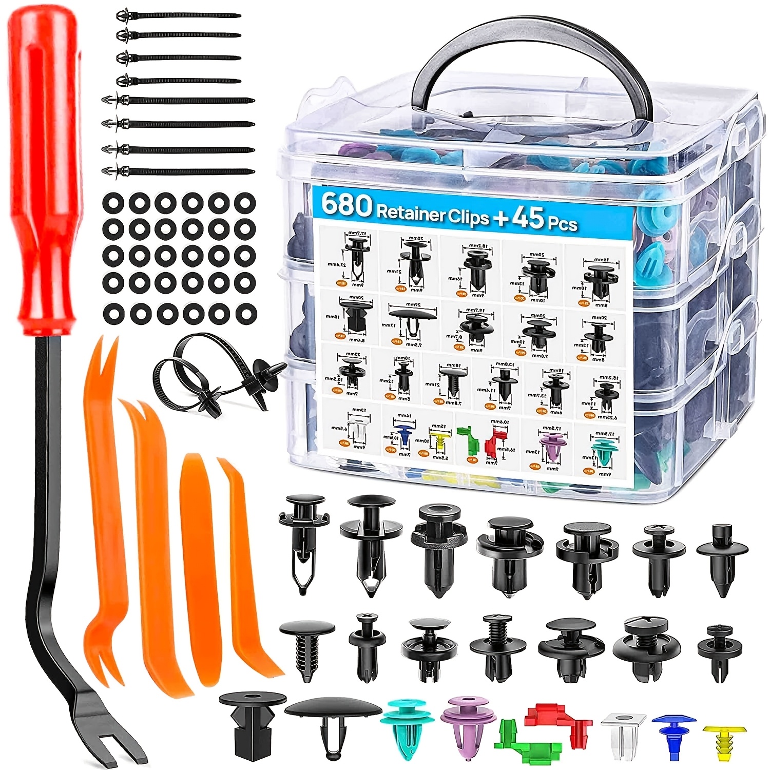 TEMU 자동차 바디 푸시 리테이너 핀 리벳 범퍼 도어 트림 패널 리테이너 패스트너 키트 자동차 제거 도구 680개 세트
