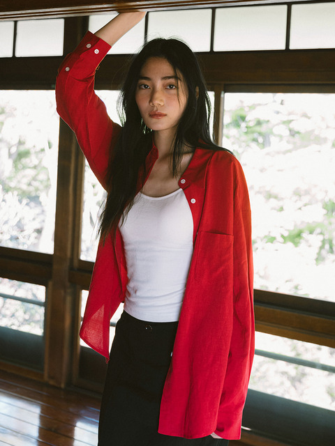 [시야쥬] SITP5198 린넨 블렌드 퓨어 셔츠_Cherry red