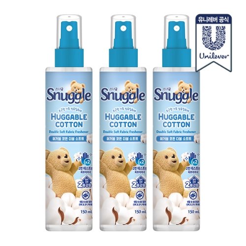★적립금사용가능★ NEW 스너글 허거블코튼 섬유탈취제 150ml 3개 (허거블코튼/스파클링시트러스/블루밍부케/허거블선샤인/멜로우선샤인/블루스파클)