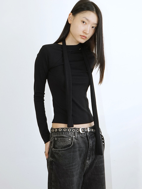 [프로보] 머플러 롱 슬리브 티셔츠 / 블랙