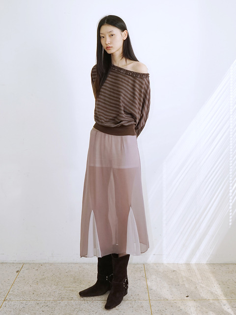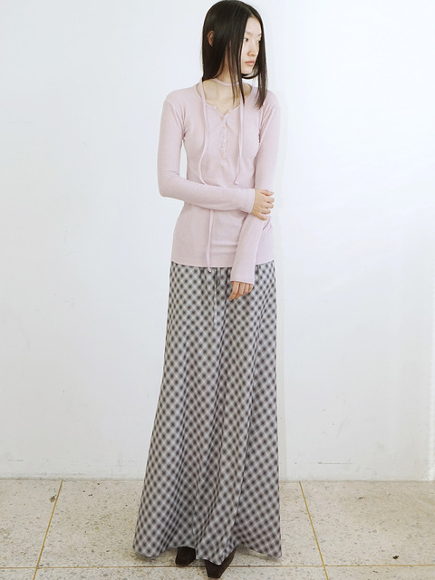 [프로보] 밴딩 맥시 롱 체크 스커트 / 브라운