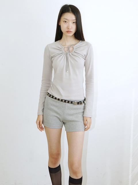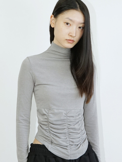 [프로보] 허리 셔링 목폴라 슬리브 티셔츠 / 그레이