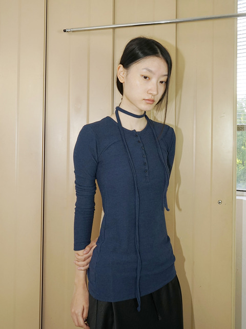 [프로보] 머플러 롱 슬리브 티셔츠 / 멜란지 그레이