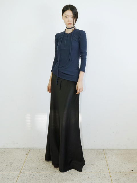 [프로보] 새틴 맥시 롱 밴딩 스커트 / 블랙
