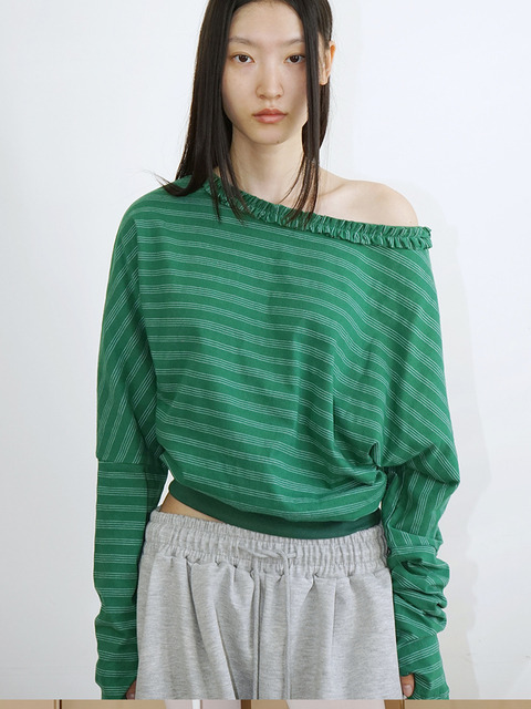 [프로보] 돌맨 스트라이프 프릴 티 / 그린
